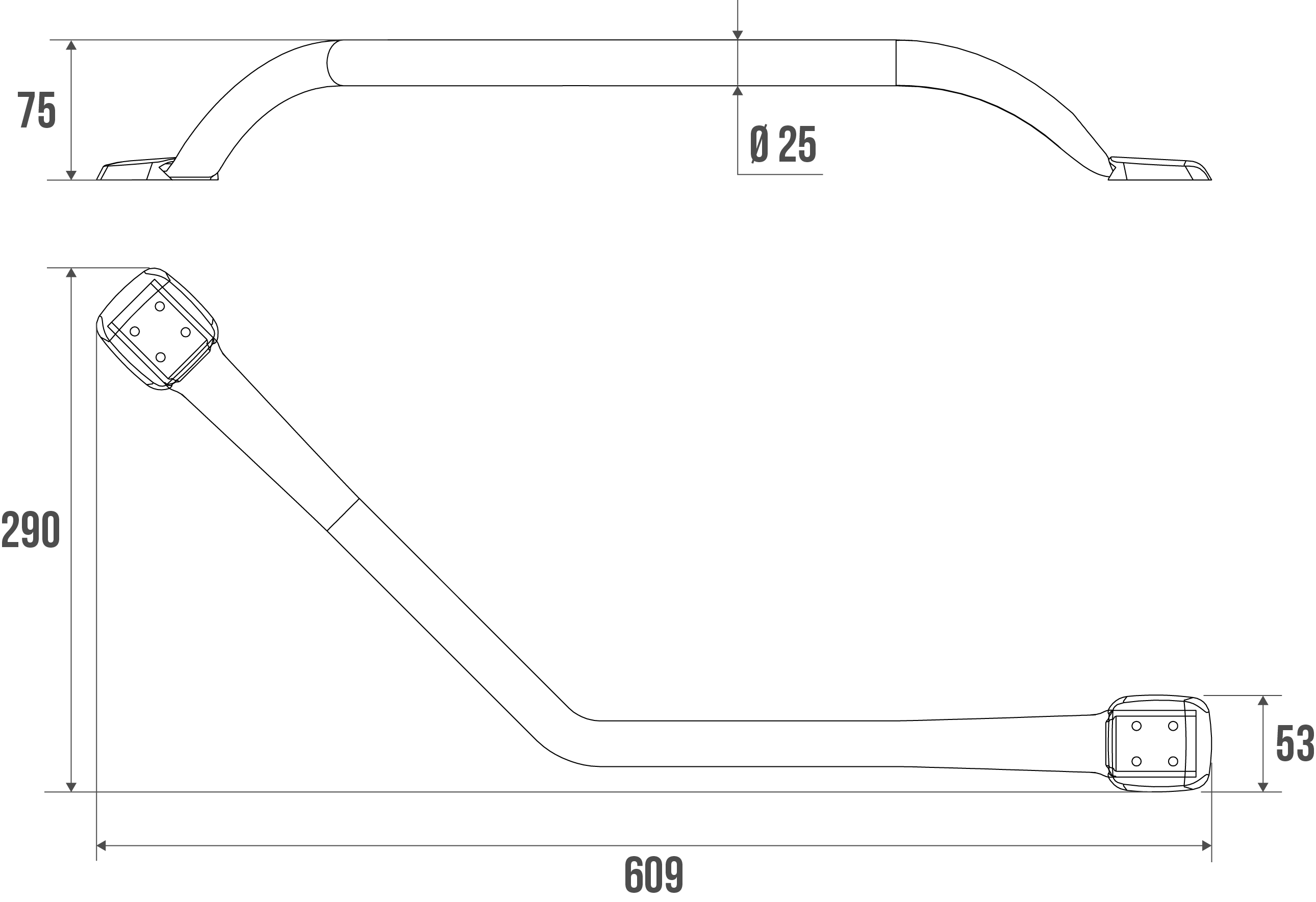 Barre monopoutre coudée 135° 33x33 cm noire MANA
