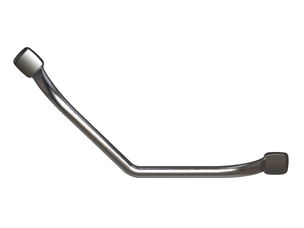 Barre d'appui coudée angle 135° symétrique, 330 x 330 mm, tube inox 304 brossé Ø 25 mm, cache-fixations en résine de synthèse, fixations invisibles.